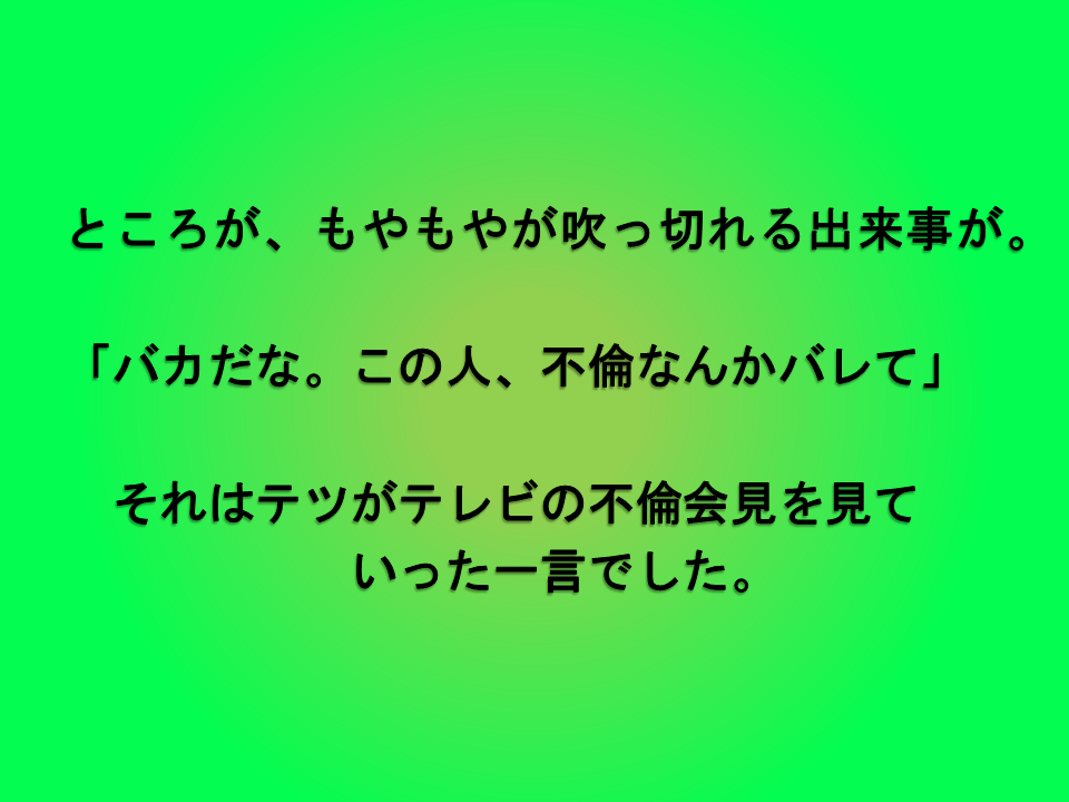 でも、テツはこの時、浮気疑惑があったのに、堂々と「バレてバカ」と言いました。