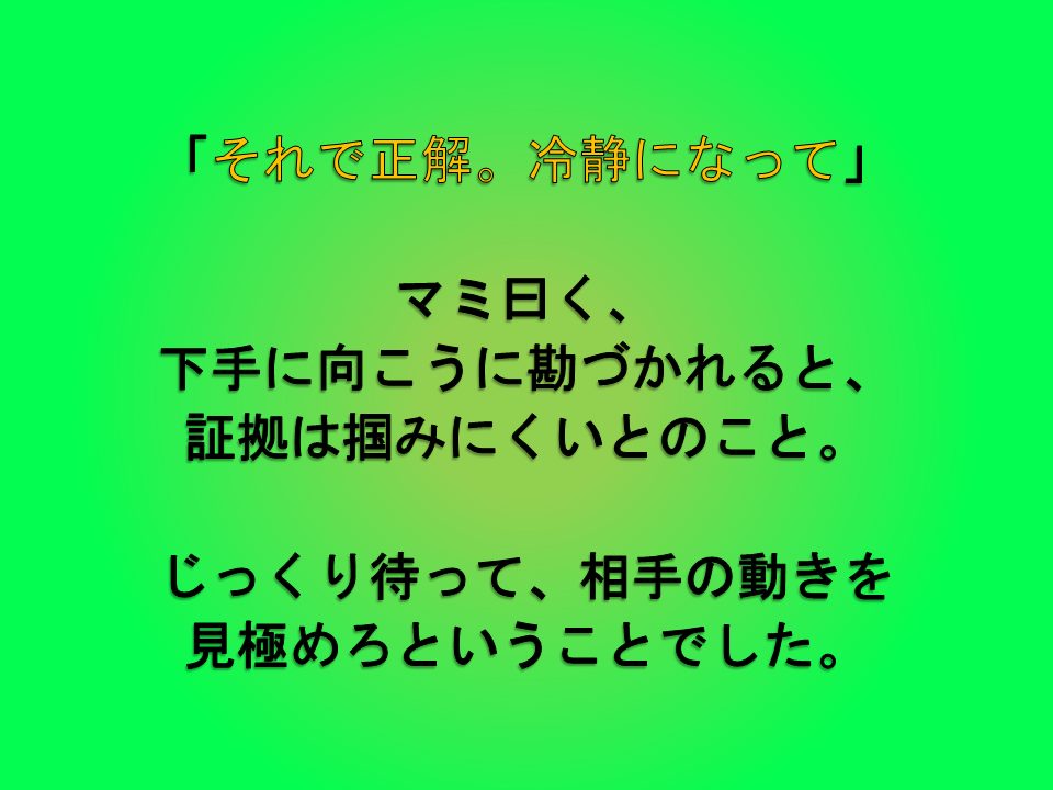 教訓:深呼吸。張り込み中でも、頭の中は張り詰めるな。