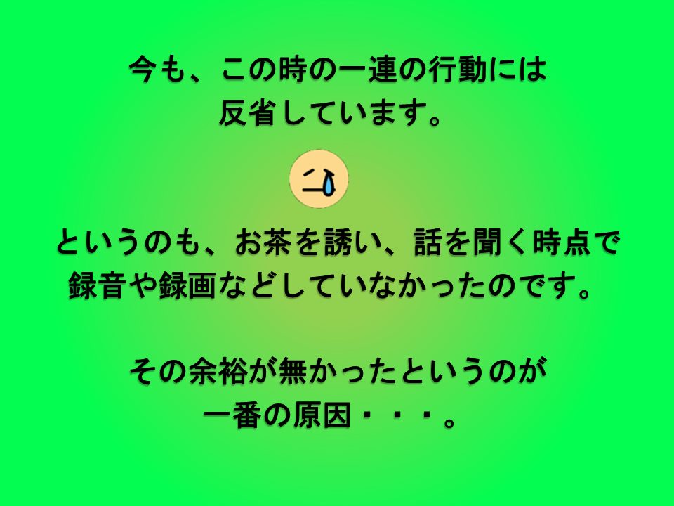 ココで、録音、録画しておけばもっと早くに決着がついたのに。