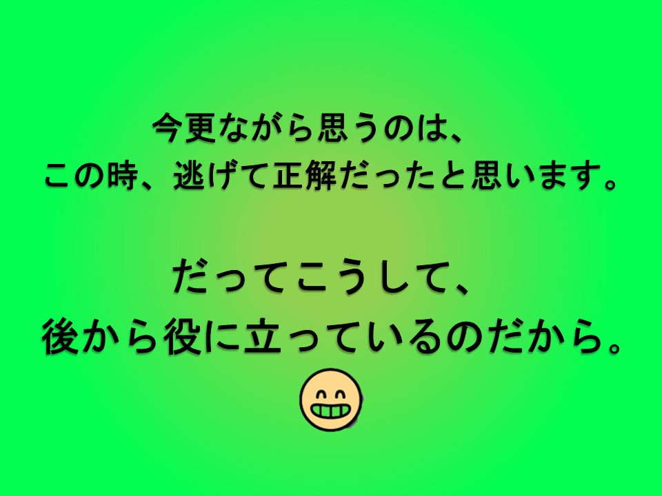 教訓:逃げても大丈夫。辛ければ、どんどん逃げよう