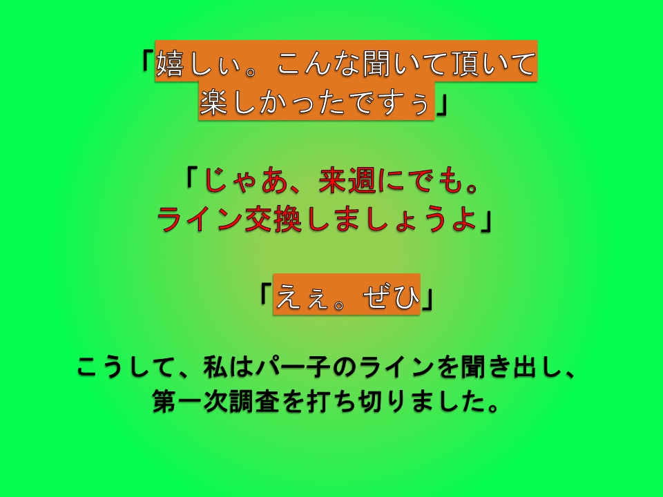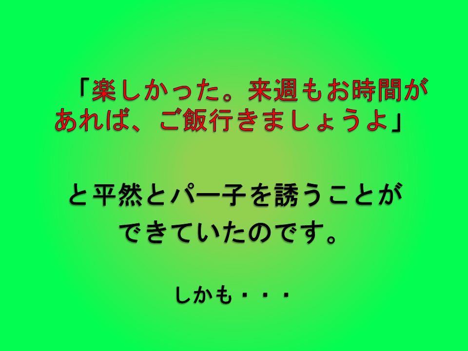 実はこの時、私がトイレに行く前に、パー子が先に「お手洗い」と行きました。