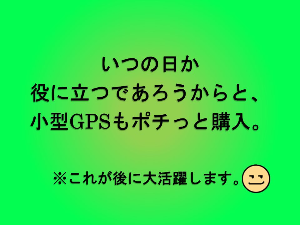 ちなみに、GPSは30日使い切りタイプで、1万円前後で購入。