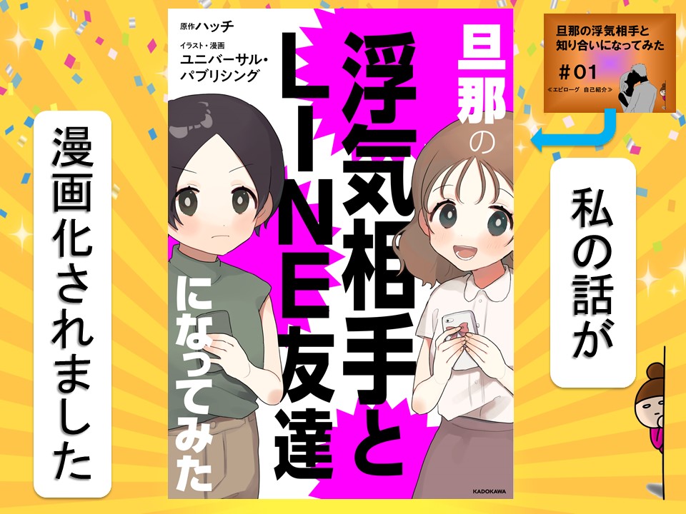旦那の浮気相手と知り合いになってみた 漫画化決定2021.12.06旦那の浮気相手と知り合いになってみた いつもこのブログを愛読して頂いている皆様へお知らせが・・・旦那の浮気相手と知り合いになってみた 1 │ サレ妻ウォーズ byハッチ (nbblog.jp)このお話が・・・な、な、なんと!! 主な販売先 ピッコマ 旦那の浮気相手とLINE友達になってみた|無料漫画(まんが)ならピッコマ|ハッチ ユニバーサル・パブリシング (piccoma.com) Kindle 旦那の浮気相手とLINE友達になってみた | ユニバーサル・パブリシング, ハッチ | マンガ | Kindleストア | Amazon LINE漫画 旦那の浮気相手とLINE友達になってみた | LINE マンガコミックシーモア 旦那の浮気相手とLINE友達になってみた 1巻(最新刊) | ハッチ/ユニバーサル・パブリシング | 無料試し読みなら漫画(マンガ)・電子書籍のコミックシーモア (cmoa.jp) 0 コメントはこちら 同じカテゴリの記事 旦那の浮気相手と知り合いになってみた 漫画化決定 旦那の浮気相手と知り合いになってみた 最終話 旦那の浮気相手と知り合いになってみた 95 旦那の浮気相手と知り合いになってみた 94 旦那の浮気相手と知り合いになってみた 93 旦那の浮気相手と知り合いになってみた 92 旦那の浮気相手と知り合いになってみた 91 旦那の浮気相手と知り合いになってみた 90 旦那の浮気相手と知り合いになってみた 89 旦那の浮気相手と知り合いになってみた 88 旦那の浮気相手と知り合いになってみた 87 旦那の浮気相手と知り合いになってみた 86 旦那の浮気相手と知り合いになってみた 85 旦那の浮気相手と知り合いになってみた 84 旦那の浮気相手と知り合いになってみた 83 旦那の浮気相手と知り合いになってみた 82 旦那の浮気相手と知り合いになってみた 81 旦那の浮気相手と知り合いになってみた 80 旦那の浮気相手と知り合いになってみた 79 旦那の浮気相手と知り合いになってみた 78 旦那の浮気相手と知り合いになってみた 77 旦那の浮気相手と知り合いになってみた 76 旦那の浮気相手と知り合いになってみた 75 旦那の浮気相手と知り合いになってみた 74 旦那の浮気相手と知り合いになってみた 73 旦那の浮気相手と知り合いになってみた 72 旦那の浮気相手と知り合いになってみた 71 旦那の浮気相手と知り合いになってみた 70 旦那の浮気相手と知り合いになってみた 69 旦那の浮気相手と知り合いになってみた 68 旦那の浮気相手と知り合いになってみた 67 旦那の浮気相手と知り合いになってみた 66 旦那の浮気相手と知り合いになってみた 65 旦那の浮気相手と知り合いになってみた 65 旦那の浮気相手と知り合いになってみた 63 旦那の浮気相手と知り合いになってみた 62 旦那の浮気相手と知り合いになってみた 61 旦那の浮気相手と知り合いになってみた 60 旦那の浮気相手と知り合いになってみた 59 旦那の浮気相手と知り合いになってみた 58 旦那の浮気相手と知り合いになってみた 57 旦那の浮気相手と知り合いになってみた 56 旦那の浮気相手と知り合いになってみた 55 旦那の浮気相手と知り合いになってみた 54 旦那の浮気相手と知り合いになってみた 53 旦那の浮気相手と知り合いになってみた 52 旦那の浮気相手と知り合いになってみた 51 旦那の浮気相手と知り合いになってみた 50 旦那の浮気相手と知り合いになってみた 49 旦那の浮気相手と知り合いになってみた 48 旦那の浮気相手と知り合いになってみた 47 旦那の浮気相手と知り合いになってみた 46 旦那の浮気相手と知り合いになってみた 45 旦那の浮気相手と知り合いになってみた 44 旦那の浮気相手と知り合いになってみた 43 旦那の浮気相手と知り合いになってみた 42 旦那の浮気相手と知り合いになってみた 41 旦那の浮気相手と知り合いになってみた 40 旦那の浮気相手と知り合いになってみた 39 旦那の浮気相手と知り合いになってみた 38 旦那の浮気相手と知り合いになってみた 37 旦那の浮気相手と知り合いになってみた 36 旦那の浮気相手と知り合いになってみた 35 旦那の浮気相手と知り合いになってみた 34 旦那の浮気相手と知り合いになってみた 33 旦那の浮気相手と知り合いになってみた 32 旦那の浮気相手と知り合いになってみた 31 旦那の浮気相手と知り合いになってみた 30 旦那の浮気相手と知り合いになってみた 29 旦那の浮気相手と知り合いになってみた 28 旦那の浮気相手と知り合いになってみた 27 旦那の浮気相手と知り合いになってみた 26 旦那の浮気相手と知り合いになってみた 25 旦那の浮気相手と知り合いになってみた 24 旦那の浮気相手と知り合いになってみた 23 旦那の浮気相手と知り合いになってみた 22 旦那の浮気相手と知り合いになってみた 21 旦那の浮気相手と知り合いになってみた 20 旦那の浮気相手と知り合いになってみた 19 旦那の浮気相手と知り合いになってみた 18 旦那の浮気相手と知り合いになってみた 17 旦那の浮気相手と知り合いになってみた 16 旦那の浮気相手と知り合いになってみた 15 旦那の浮気相手と知り合いになってみた 14 旦那の浮気