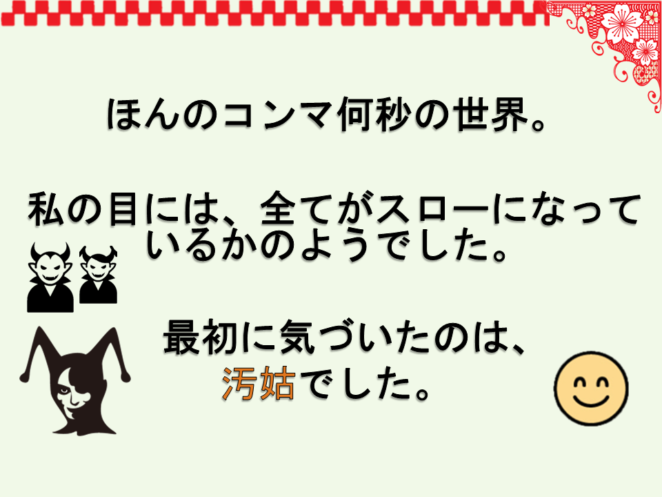 感覚が敏感になり、漫画の様に皆がスローモーションに見えたのです。