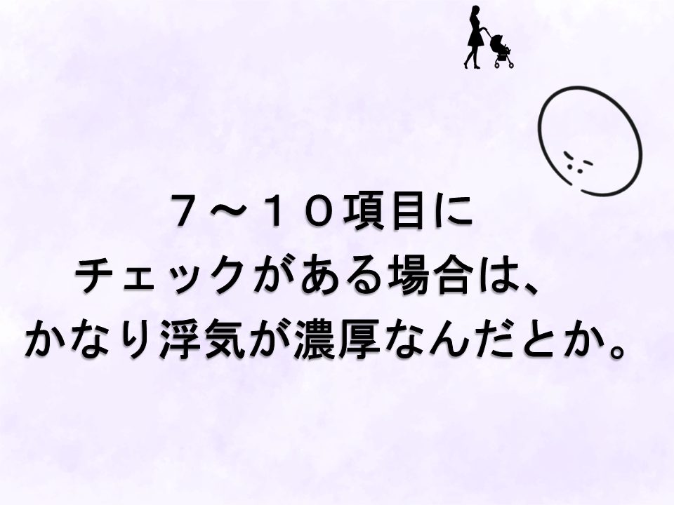 現実に浮気していたわけですから、やはりそのチェック項目は正しかったのです。