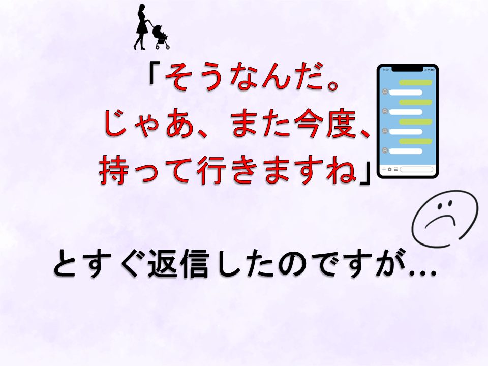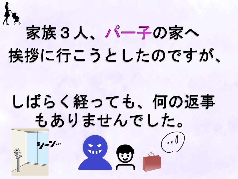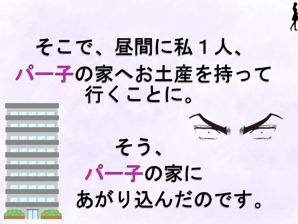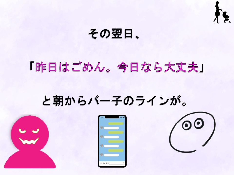パー子は最初っから居留守を使う気で、ラインに「来ても良いよ」と返信していました。
