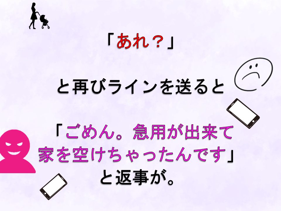 教訓:ラインを送ったのに、留守な時は裏があるし、本当に怪しい